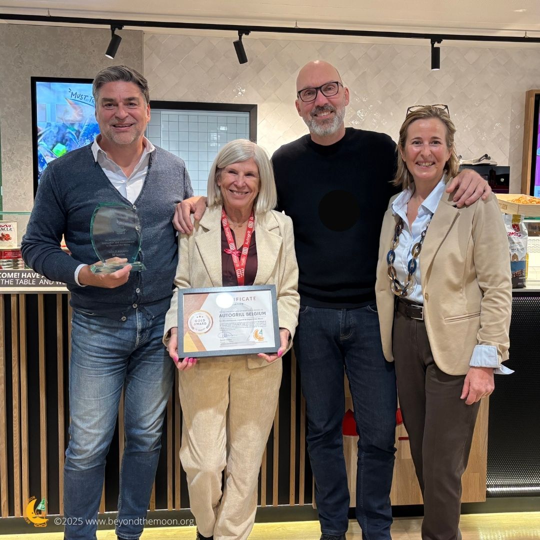Et il y a eu un autre moment très spécial… Au nom de Beyond the Moon, Pascale Somers a remis une grande surprise : le Beyond the Moon Gold Award. Une véritable reconnaissance sincère et une étape marquante : grâce à Autogrill Belgium, 50 familles ont déjà pu profiter d’un séjour sans souci au fil des années. Ce Gold Award n’est pas seulement un signe de gratitude, mais aussi un hommage aux innombrables souvenirs précieux qu’ils ont rendus possibles.